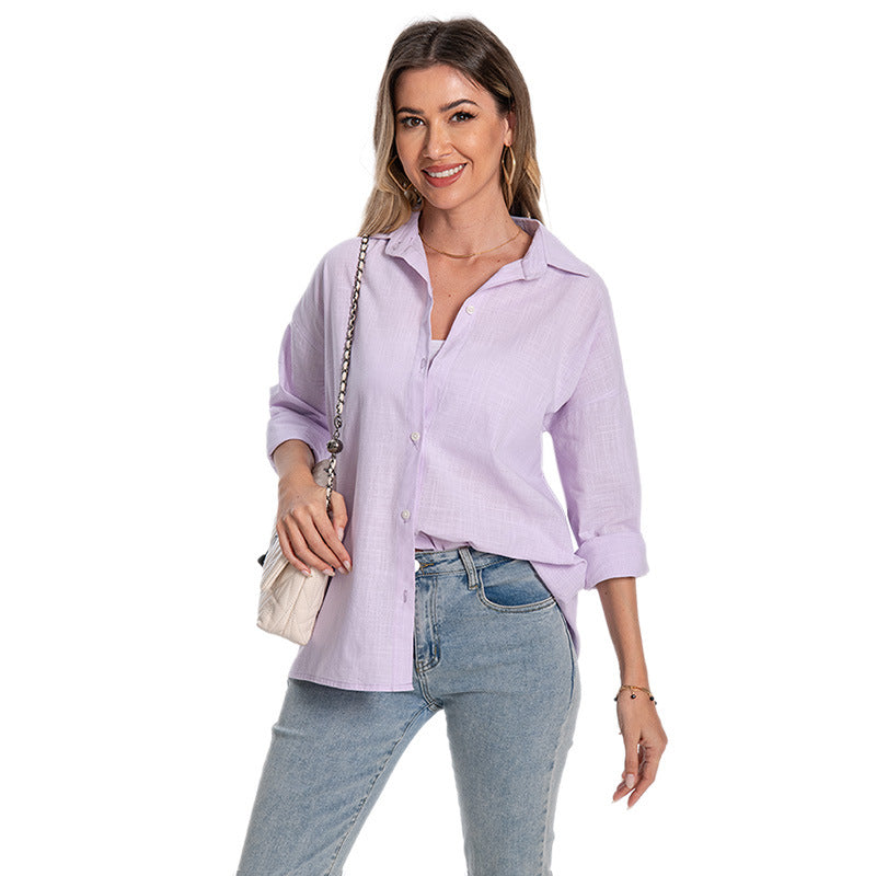 2025爆款亚马逊跨境外贸春夏女士棉麻长袖开衫宽松大码长袖衬衫
